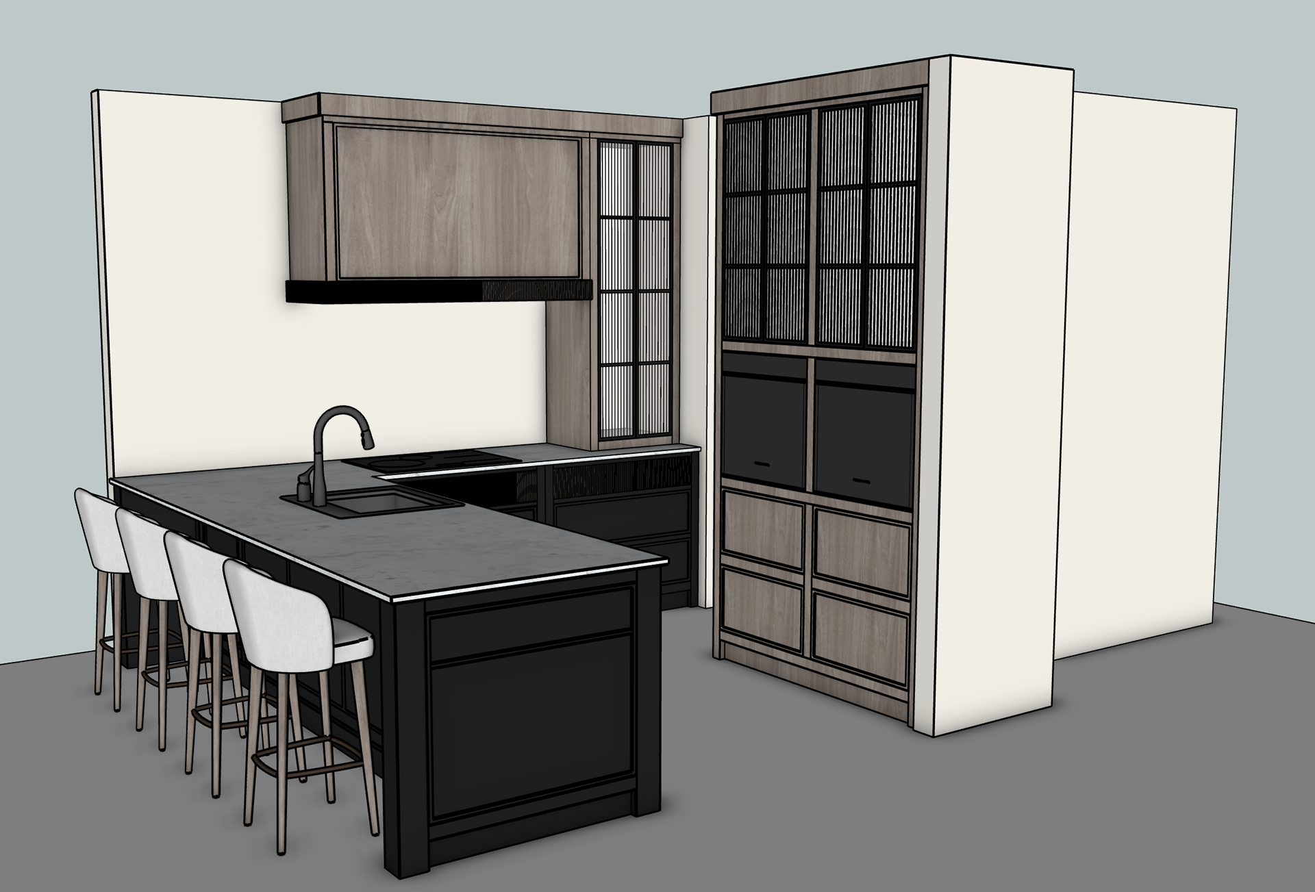 Custom Kitchen and Laundry Design for a Client, 3D visuals, Plans and Elevations.