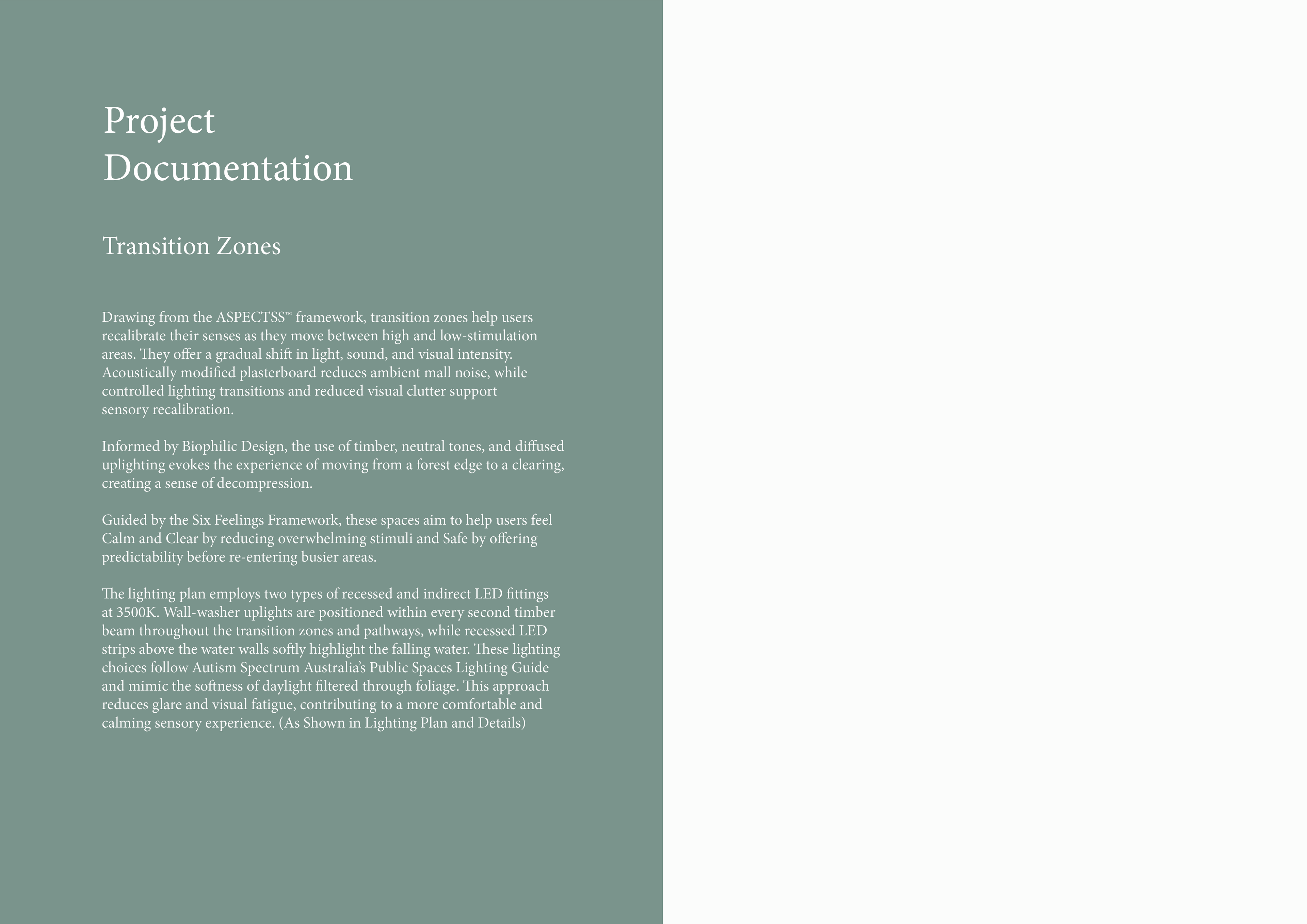"Sensory Pathway: Reimagining Accessibility in Public Spaces" is an adaptive reuse proposal for the Lower Hutt, Queensgate shopping centre. This proposal addresses the need for sensory accessibility in public spaces, where current design standards fail to support neurodiverse experiences. Guided by the 'Six Feelings' and 'ASPECTSS' Frameworks, the work utilises a number of spatial strategies, such as acoustics, spatial sequencing, zoning andĀ escape, to offer an improved experience navigating and travelling through the centre.